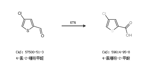 1.通过4-氯-2-噻吩甲醛合成4-氯噻吩-2-甲酸,收率约67%;