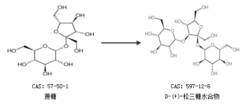 1.通过蔗糖合成D-(+)-松三糖水合物