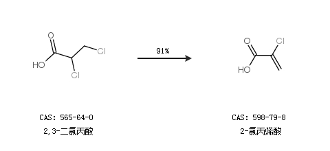 1.通过2,3-二氯丙酸合成2-氯丙烯酸,收率约91%;
