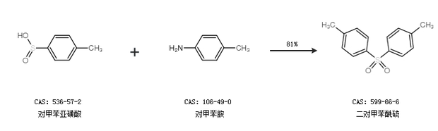 2.通过对甲苯亚磺酸和对甲苯胺合成二对甲苯酰硫,收率约81%;