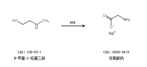 1.通过N-甲基-2-羟基乙胺合成甘氨酸钠,收率约99%;