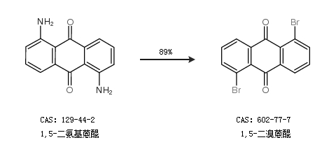 1.通过1,5-二氨基蒽醌合成1,5-二溴蒽醌,收率约89%;