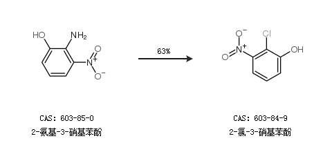 1.通过2-氨基-3-硝基苯酚合成2-氯-3-硝基苯酚,收率约63%;