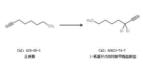 1.通过正庚腈合成1-氨基环戊烷羧酸甲酯盐酸盐