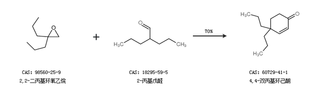 1.通过2,2-二丙基环氧乙烷和2-丙基戊醛合成4,4-双丙基环己酮,收率约70%;