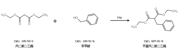 2.通过丙二酸二乙酯和苯甲醇合成苄基丙二酸二乙酯,收率约77%;