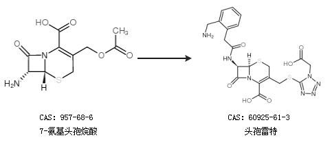 1.通过7-氨基头孢烷酸合成头孢雷特