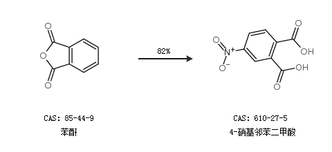 1.通过苯酐合成4-硝基邻苯二甲酸,收率约82%;