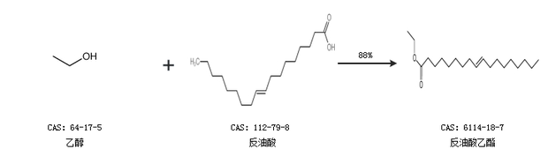 1.通过乙醇和反油酸合成反油酸乙酯,收率约88%;
