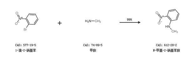2.通过1-溴-2-硝基苯和甲胺合成N-甲基-2-硝基苯胺,收率约99%;