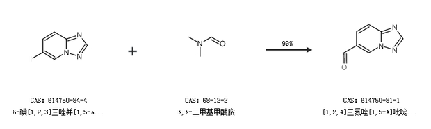 2.通过6-碘[1,2,3]三唑并[1,5-a]吡啶和N,N-二甲基甲酰胺合成[1,2,4]三氮唑[1,5-A]吡啶-6-甲醛,收率约99%;