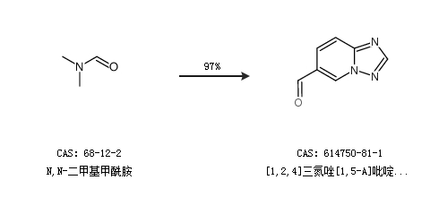 1.通过N,N-二甲基甲酰胺合成[1,2,4]三氮唑[1,5-A]吡啶-6-甲醛,收率约97%;