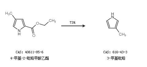 1.通过4-甲基-2-吡咯甲酸乙酯合成3-甲基吡咯,收率约73%;