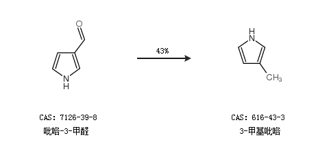 2.通过吡咯-3-甲醛合成3-甲基吡咯,收率约43%;