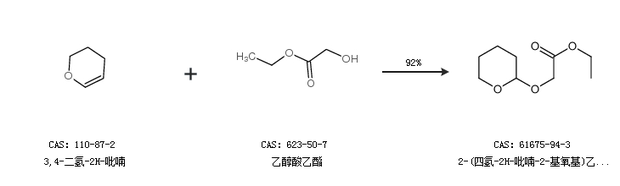 1.通过3,4-二氢-2H-吡喃和乙醇酸乙酯合成2-(四氢-2H-吡喃-2-基氧基)乙酸乙酯,收率约92%;