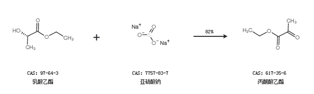 2.通过乳酸乙酯和亚硫酸钠合成丙酮酸乙酯,收率约82%;