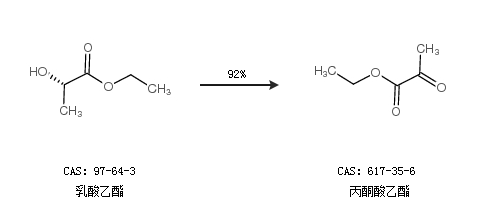 1.通过乳酸乙酯合成丙酮酸乙酯,收率约92%;