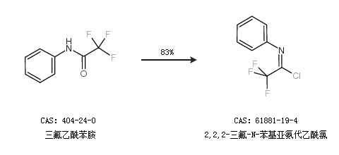 1.通过三氟乙酰苯胺合成2,2,2-三氟-N-苯基亚氨代乙酰氯,收率约83%;