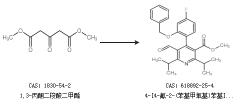 1.通过1,3-丙酮二羧酸二甲酯合成4-[4-氟-2-(苯基甲氧基)苯基]-5-甲酰基-2,6-双(1-甲基乙基)-3-吡啶羧酸甲酯