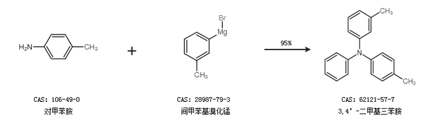 2.通过对甲苯胺和间甲苯基溴化锰合成3,4’-二甲基三苯胺,收率约95%;