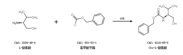 1.通过L-缬氨醇和氯甲酸苄酯合成Cbz-L-缬氨醇,收率约10%;