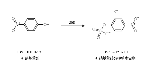 1.通过4-硝基苯酚合成4-硝基苯硫酸钾单水合物,收率约29%;