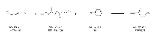 2.通过2-丁炔-1-醇、偶氮二甲酸二乙酯和苯酚合成丙炔酸乙酯