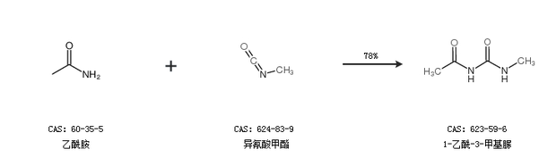 1.通过乙酰胺和异氰酸甲酯合成1-乙酰-3-甲基脲,收率约78%;