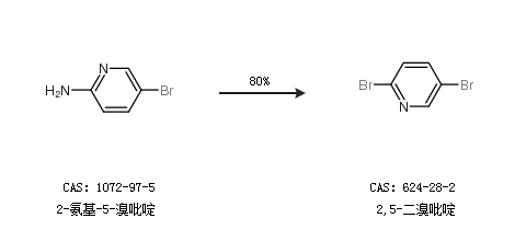 1.通过2-氨基-5-溴吡啶合成2,5-二溴吡啶,收率约80%;