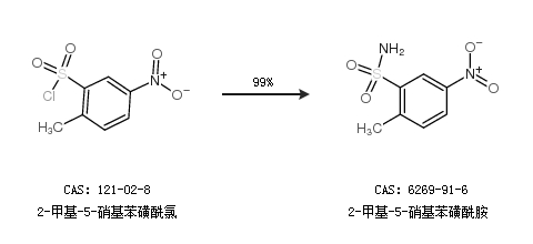 1.通过2-甲基-5-硝基苯磺酰氯合成2-甲基-5-硝基苯磺酰胺,收率约99%;
