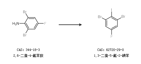 1.通过2,6-二溴-4-氟苯胺合成1,3-二溴-5-氟-2-碘苯