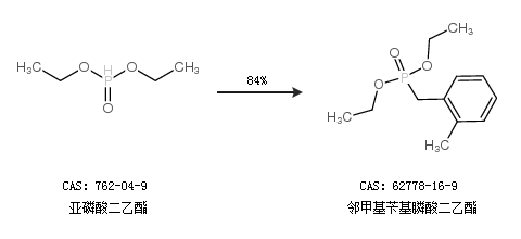 1.通过亚磷酸二乙酯合成邻甲基苄基膦酸二乙酯,收率约84%;