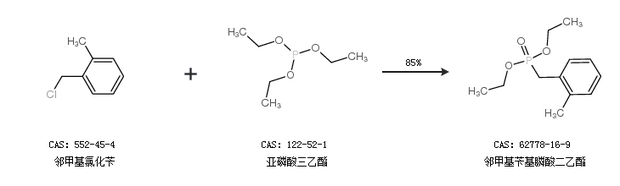 2.通过邻甲基氯化苄和亚磷酸三乙酯合成邻甲基苄基膦酸二乙酯,收率约85%;