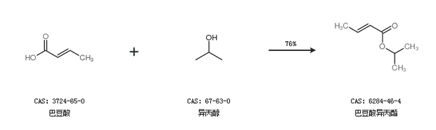 1.通过巴豆酸和异丙醇合成巴豆酸异丙酯,收率约76%;