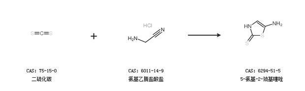 1.通过二硫化碳和氨基乙腈盐酸盐合成5-氨基-2-巯基噻唑