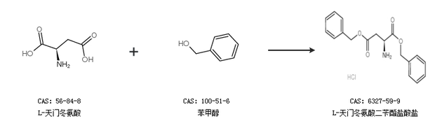 1.通过L-天门冬氨酸和苯甲醇合成L-天门冬氨酸二苄酯盐酸盐
