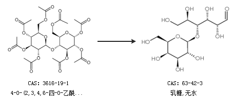 2.通过4-O-(2,3,4,6-四-O-乙酰基)-β-D-吡喃(型)葡糖基-D-吡喃(型)葡糖四乙酸酯合成乳糖,无水