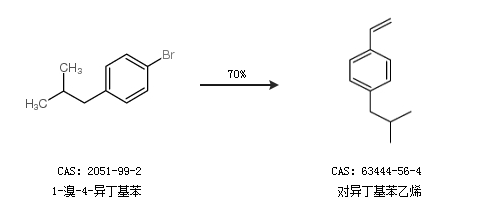 1.通过1-溴-4-异丁基苯合成对异丁基苯乙烯,收率约70%;