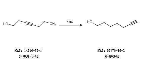 1.通过3-庚炔-1-醇合成6-庚炔醇,收率约99%;