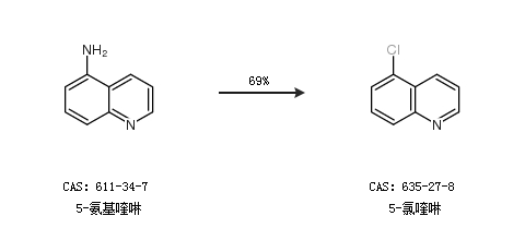 1.通过5-氨基喹啉合成5-氯喹啉,收率约69%;