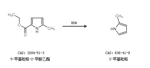 2.通过5-甲基吡咯-2-甲酸乙酯合成2-甲基吡咯,收率约80%;