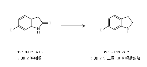 1.通过6-溴-2-羟吲哚合成6-溴-2,3-二氢-1H-吲哚盐酸盐