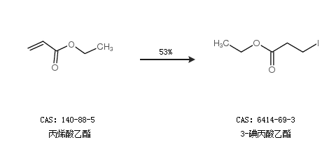 2.通过丙烯酸乙酯合成3-碘丙酸乙酯,收率约53%;