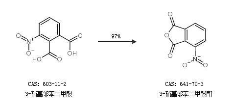 1.通过3-硝基邻苯二甲酸合成3-硝基邻苯二甲酸酐,收率约97%;
