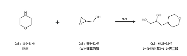1.通过吗啉和(±)-环氧丙醇合成3-(4-吗啉基)-1,2-丙二醇,收率约92%;