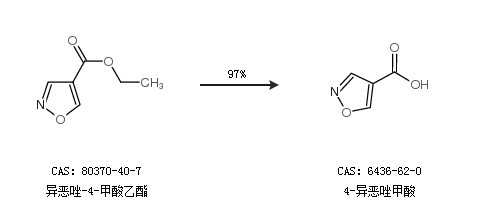 1.通过异恶唑-4-甲酸乙酯合成4-异恶唑甲酸,收率约97%;
