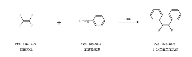 1.通过四氟乙烯和苯基氯化镁合成1 2-二氟二苯乙烯,收率约20%;