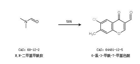 1.通过N,N-二甲基甲酰胺合成6-氯-3-甲酰-7-甲基色酮,收率约58%;