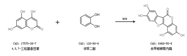 1.通过4,5,7-三羟基香豆素和邻苯二酚合成去甲蟛蜞菊内酯,收率约90%;