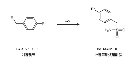 1.通过对溴溴苄合成4-溴苯甲烷磺酰胺,收率约67%;